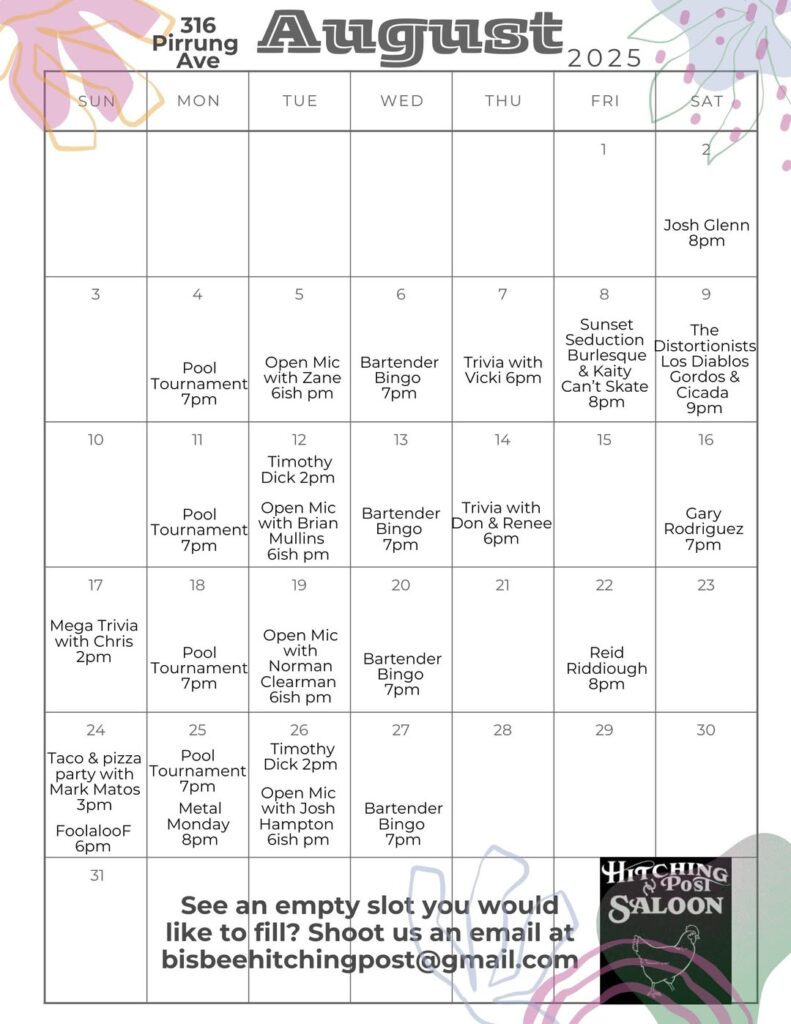 August 2024 Bisbee Event Calendars