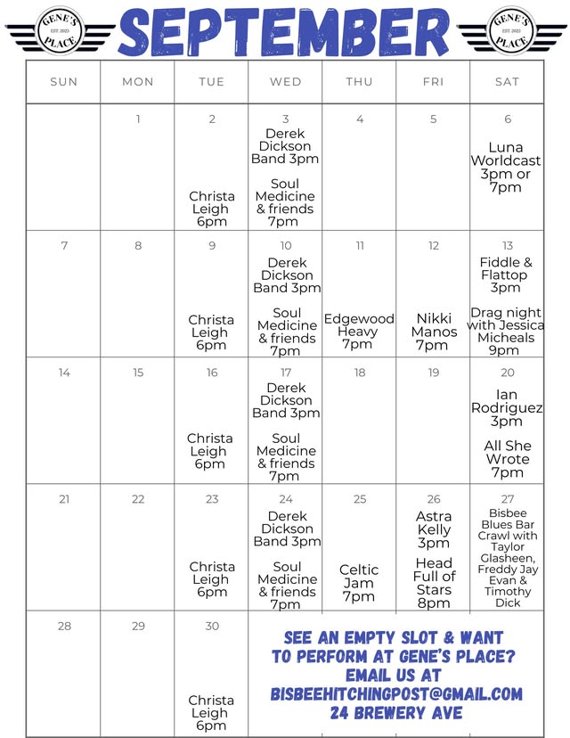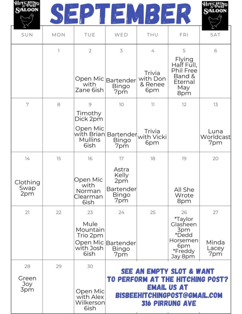 September 2024 Bisbee Event Calendars