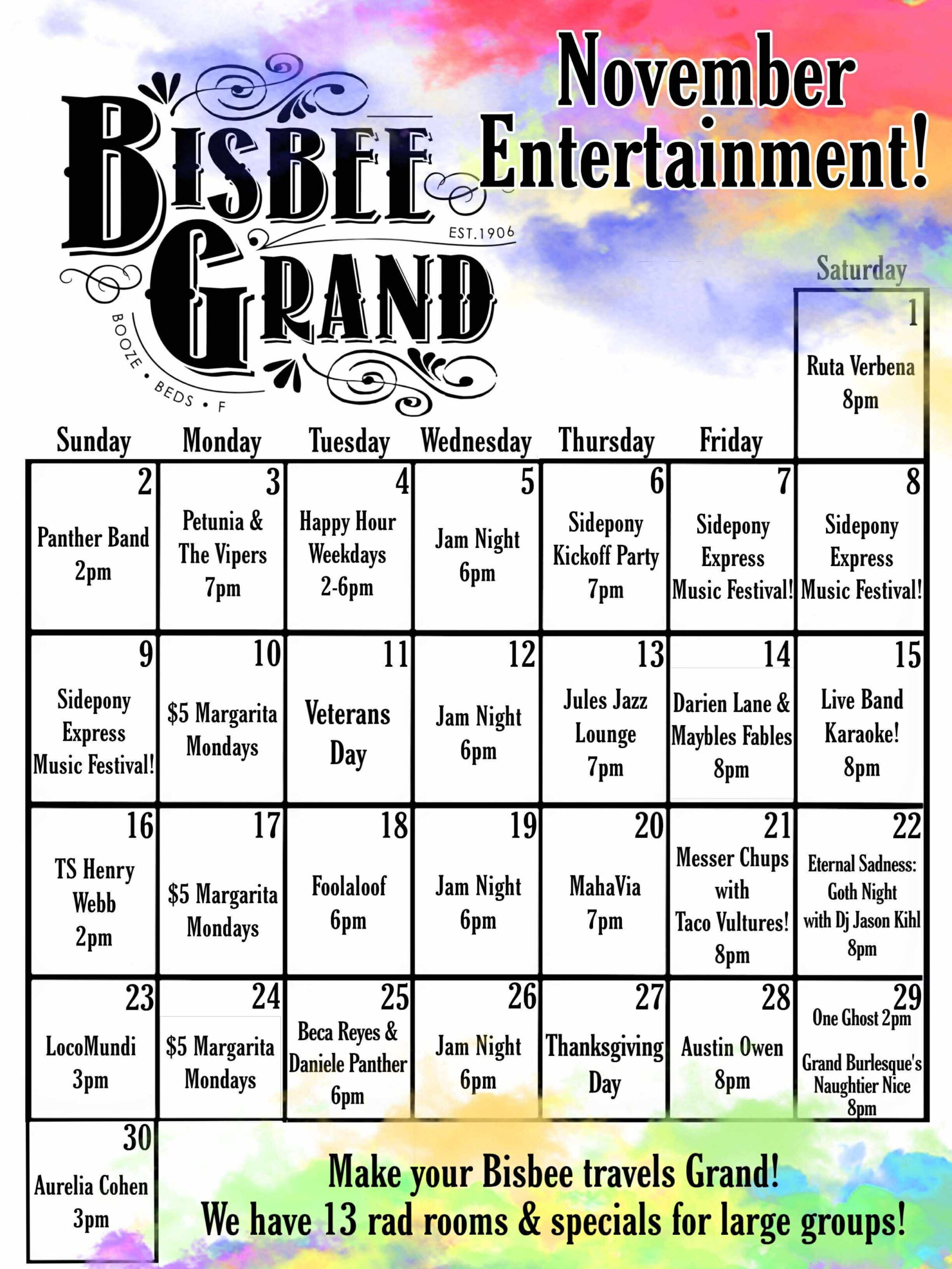November 2024 Bisbee Event Calendars