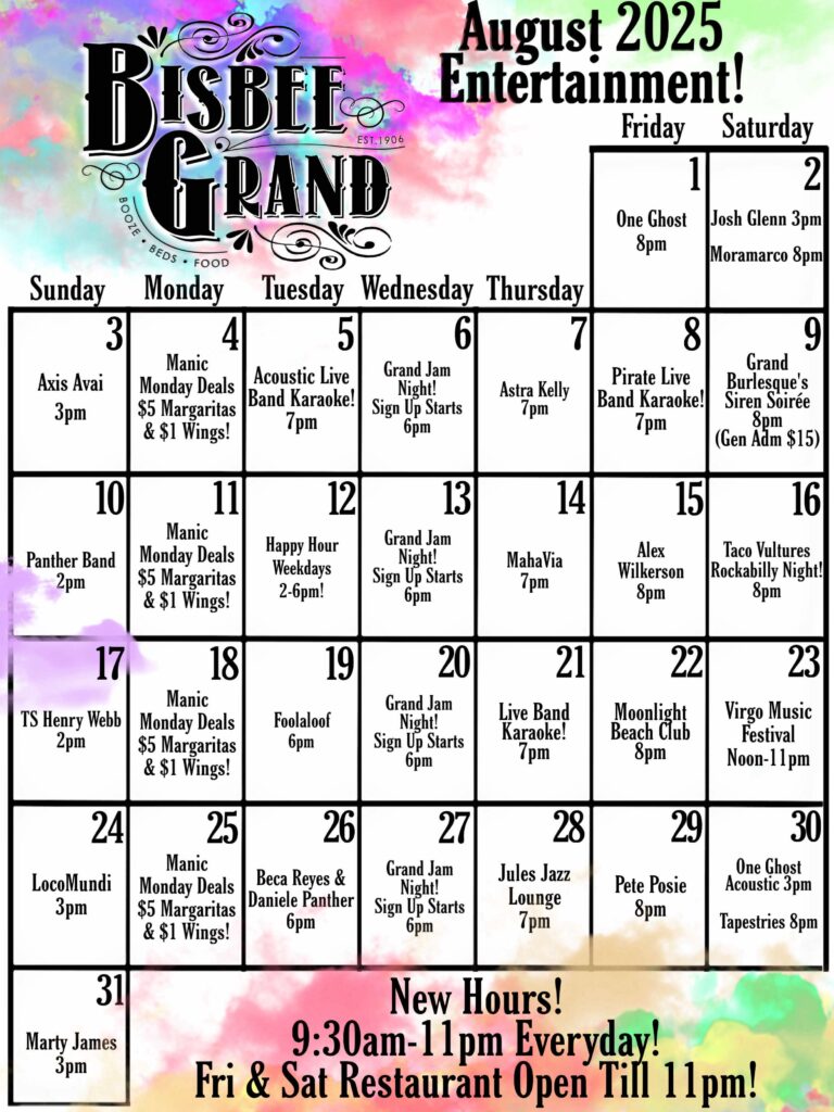 August 2024 Bisbee Event Calendars