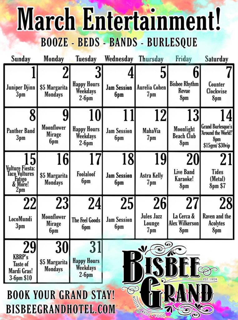 March 2024 Bisbee Event Calendars