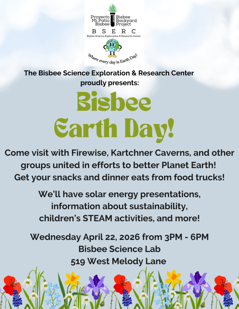 Do you have kids that want some fun science? BSERC is hosting Science Fridays at the Bisbee Science Lab. Every Friday in April from 10AM – 1PM 519 West Melody Lane.