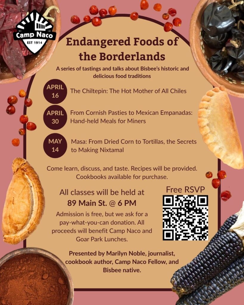Endangered Foods of the Borderlands 6pm 89 Main St. – a series of tastings and talks about Bisbee’s historic and delicious food traditions. This month: The Chiltepin: the hot mother of all chiles.