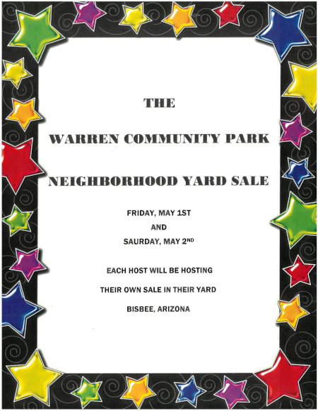 Warren Vista Park Community Yard Sale Friday and Saturday – each host will be hosting their own yard sale.