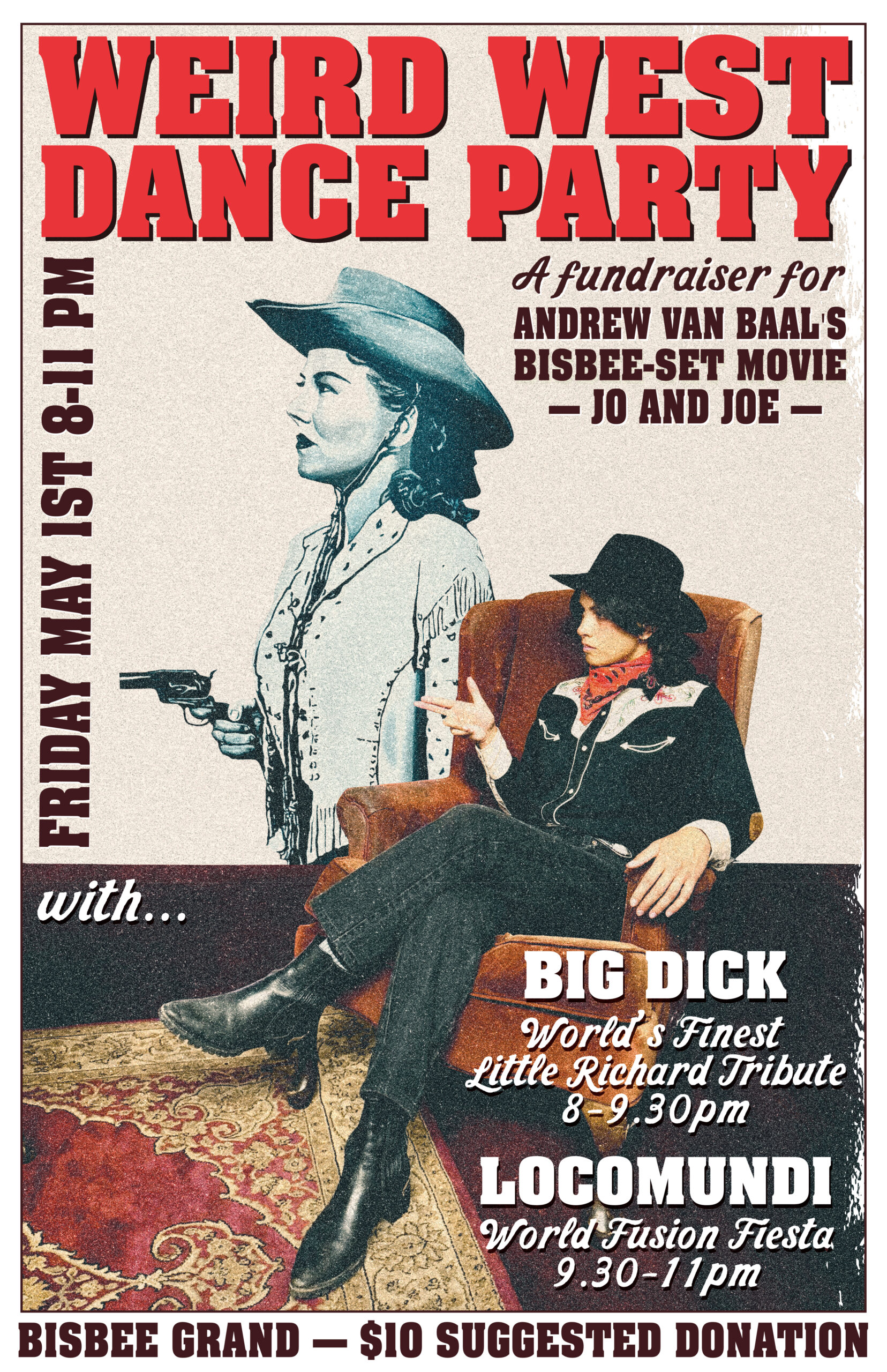 Big Dick (Worlds’ Best Little Richard Tribute) & LocoMundi (Crazy World Music) – Fundraiser for Jo & Joe (the movie) 8pm $10 Bisbee Grand 8 – 11 pm