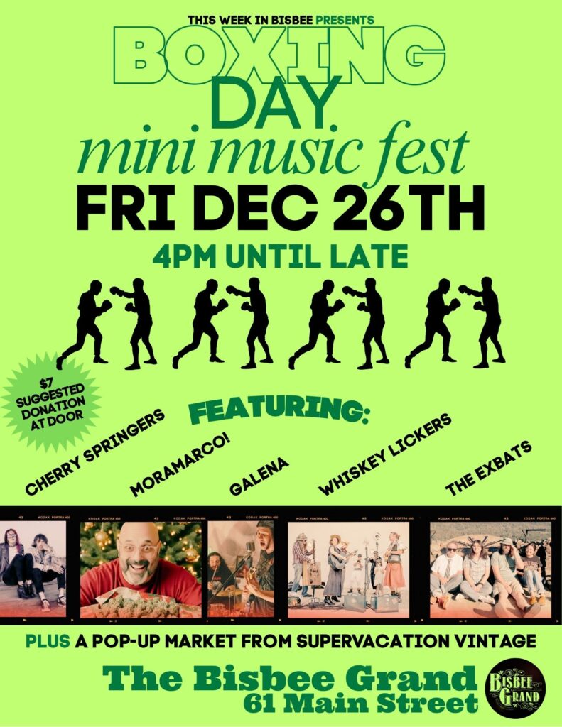 TWIB and the Bisbee Grand Present Boxing Day Mini Fest! Have some fun at the Grand on one of Bisbee’s busiest days. With: