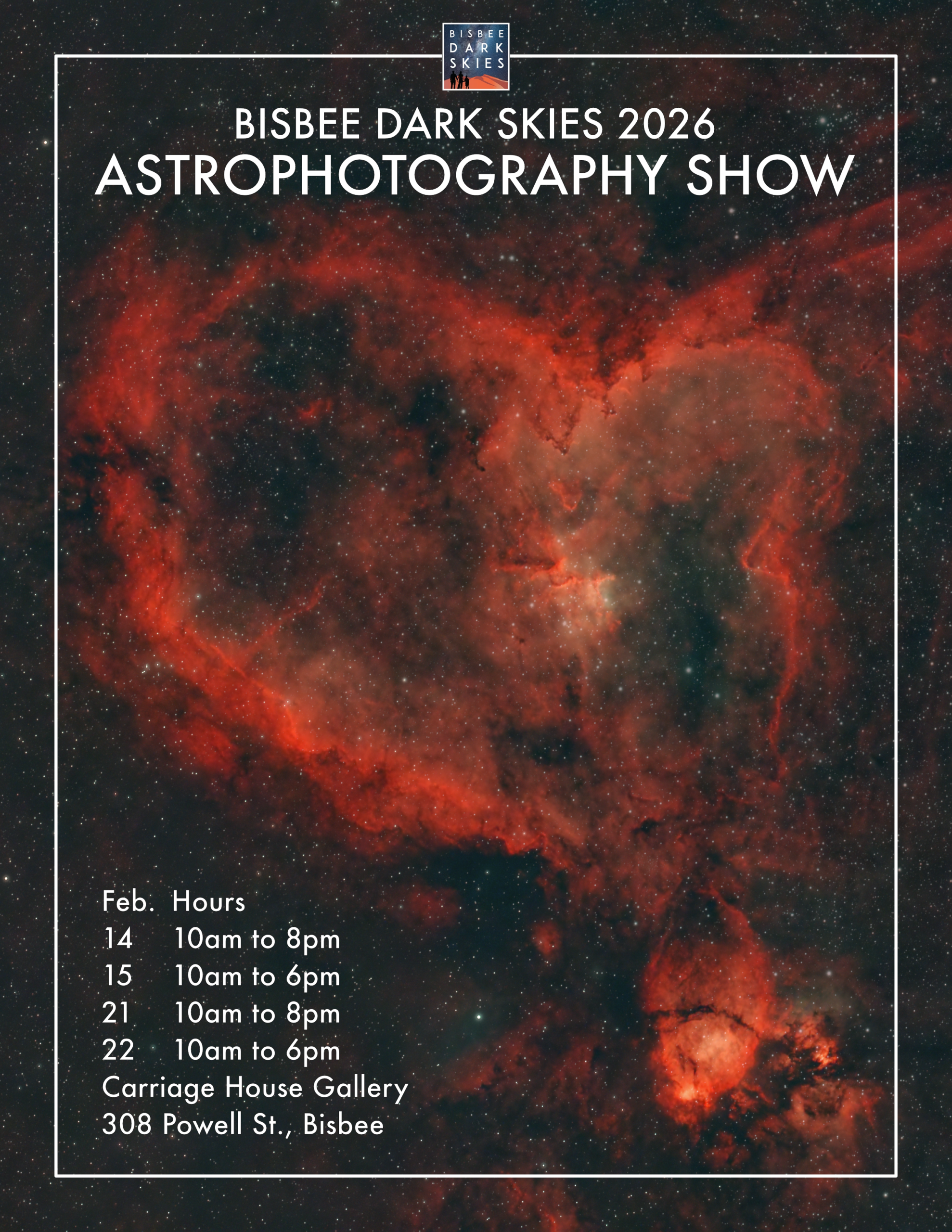 Bisbee Dark Skies Astrophotography Show at Carriage House Studio 10am – 8pm 308 Powell St. in Warren
