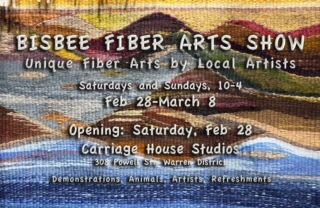 Bisbee Fiber Arts Show at Carriage House Studios 308 Powell St 10am – 4pm – runs Saturday & Sunday Thru March 8