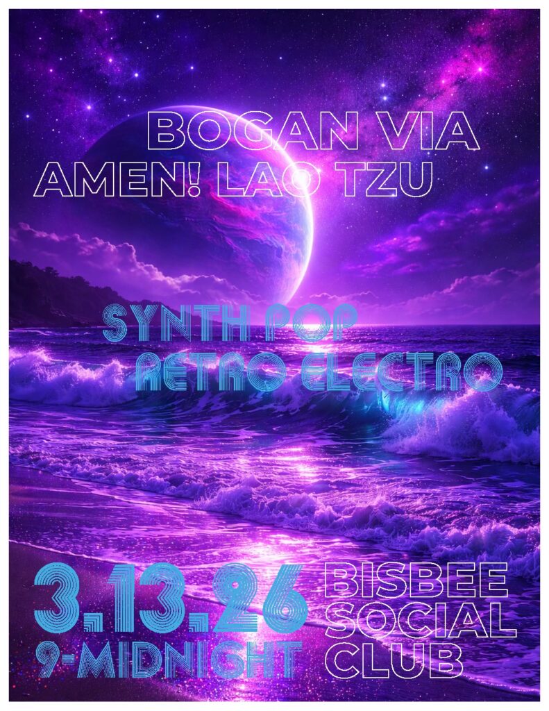 Synth/retro electronica from Bogan Via and Amen! Lau Tsu at Bisbee Social Club 9pm – midnight
