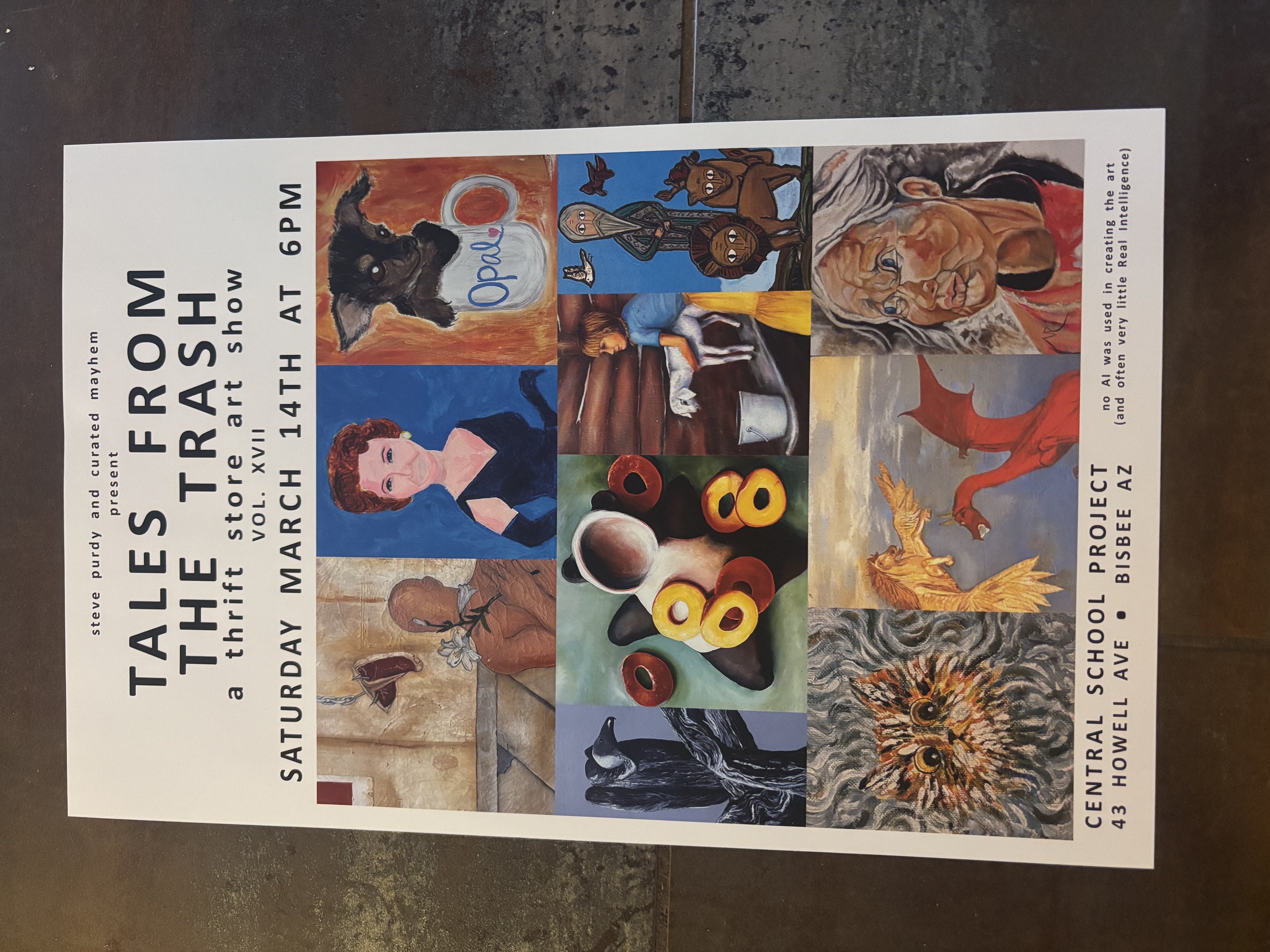 Tales from the Trash art show at Central School Project 6pm – curated art show from thrift stores and garbage bins, proceeds from sales go to CSP.