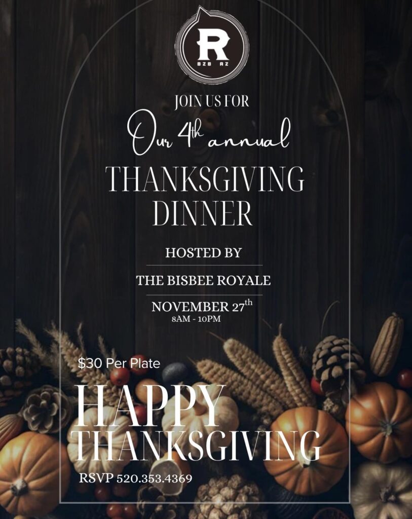 4th Annual Thanksgiving at Bisbee Royale $30 a plate. For reservations, contact 520 353 4369